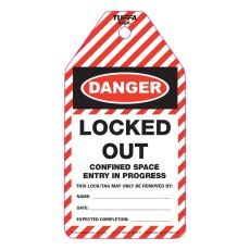 DANGER LOCKED OUT CONFINED SPACE ENTRY IN PROGRESS TUFFA TAGS .. Product #: 8175-000071 Regular price: $0.00 $0.00