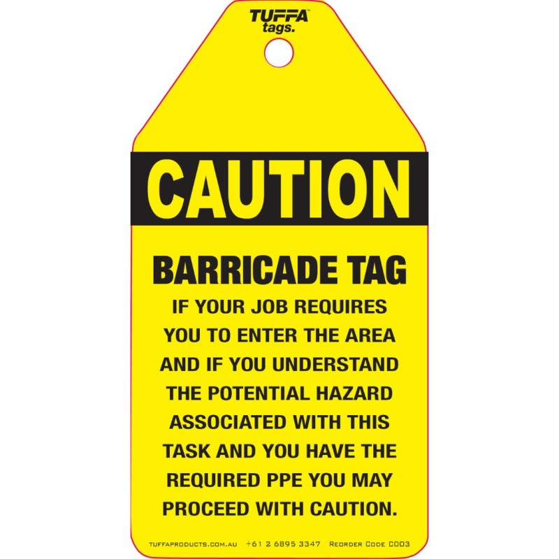 CAUTION BARRICADE TUFFA TAGS .. Product #: 8175-000065 Regular price: $0.00 $0.00