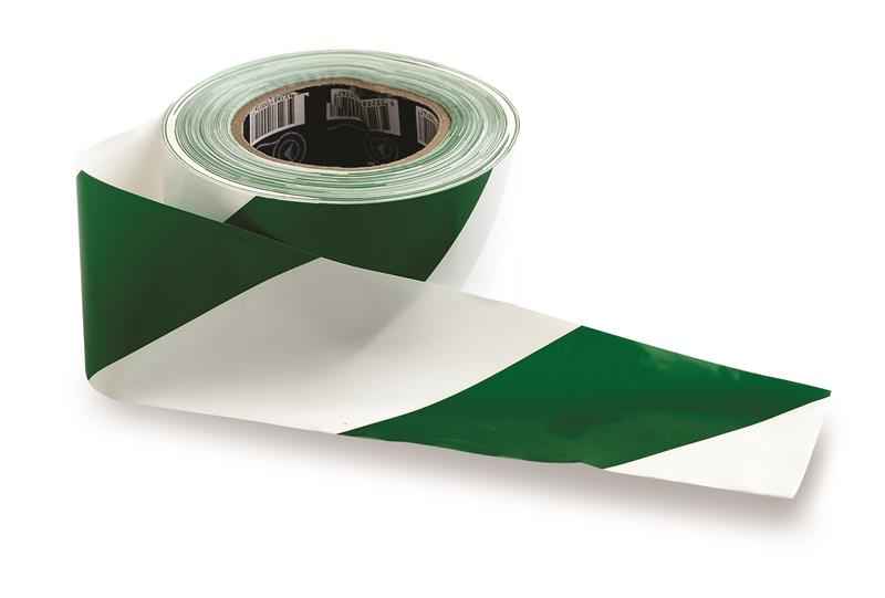 BARRICADE / BARRIER TAPE GREEN / WHITE 100M X 75MM