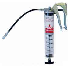 GREASE GUN TRIGGER ACTION CLEAR BARREL 8500PSI ALEMLUBE Develops grease pressures up to 8,500psi 1.1g delivery per stroke on the high volume setting 0.7.. Product #: 1060-000340 Regular price: $0.00 $0.00