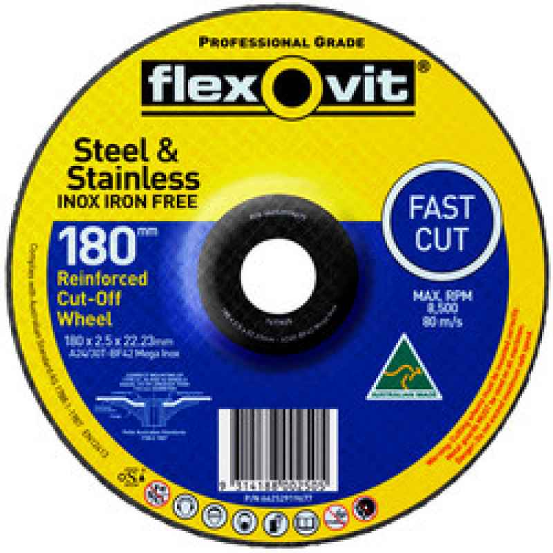 CUT OFF WHEEL D/C S/STEEL MEGA INOX 178 X 2.5 X 22.2MM FLEXOVIT .. Product #: 2016-020470 Regular price: $0.00 $0.00
