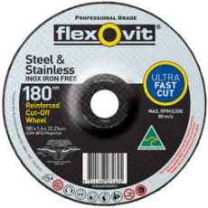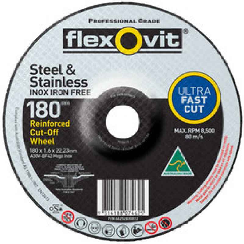CUT OFF WHEEL D/C S/STEEL MEGA INOX 230 X 1.9 X 22.2MM FLEXOVIT .. Product #: 2016-020315 Regular price: $0.00 $0.00